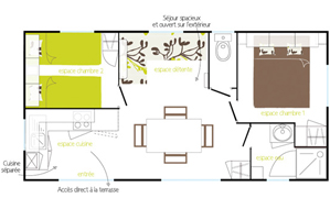 Mobil-home Selenia confort ( 34 m² ) terrasse couverte 5 personnes